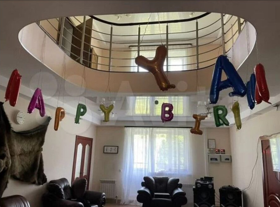 Реклама дома появилась на сайтах объявлений. Площадь дома — 870 кв.метров, есть бассейн, сауна, бильярд, 7 комнат с двуспальными кроватями, огромная веранда, зал для настольного тенниса и банкетный зал. Всего в особняке — 3 этажа. У дома — большая территория в 40 соток, а также свой причал и пляж.