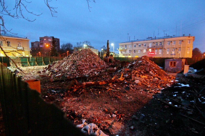 В конце прошлой недели начался снос остатков дома Леонтьева. Его ведет один экскаватор. Разрешение на строительство пока не выдано, поэтому неясны ни сроки, ни внешний облик будущего объекта. По закону после снятия памятника с охраны его воссоздавать не обязаны.