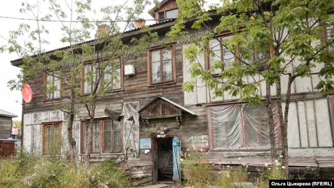 Все 66 домов деревянные. У большей части просели фундаменты, в подъездах ветхие скрипучие лестницы, с потолка свисает паутина проводки, в углах цветет плесень. На некоторых домах виднеются дыры в стенах – это следы пожаров, поясняют жители.