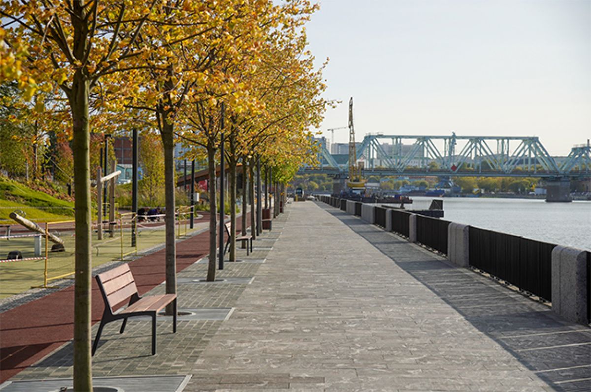 На уже сданном участке набережной, как рассказали в холдинге, выполнено комплексное благоустройство. Там проложили дорожки и тропинки, вымостив их гранитом. Всего – 13 тыс. кв. м. Камень привезли в Москву из разных месторождений. Кроме того, построены 2 детские площадки, проложены беговая и велодорожки.