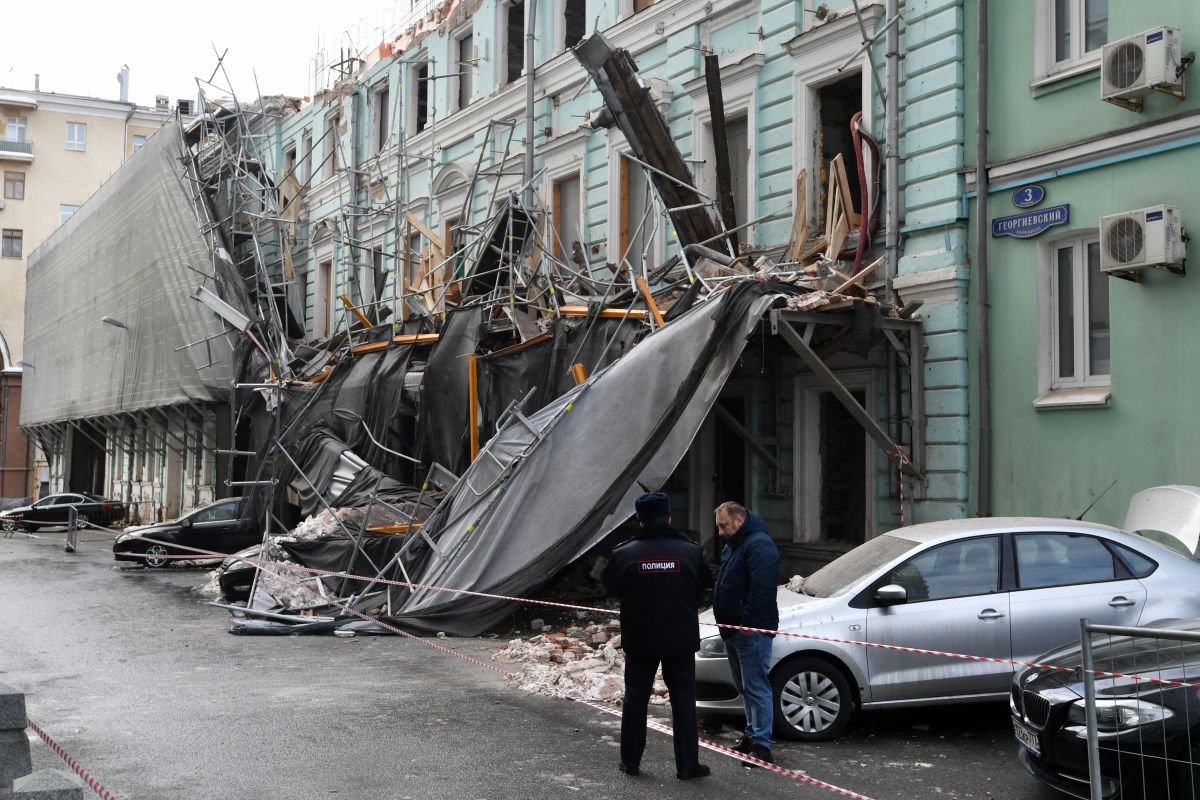 Возле Госдумы строительные леса упали на припаркованные машины - «Недвижимость»