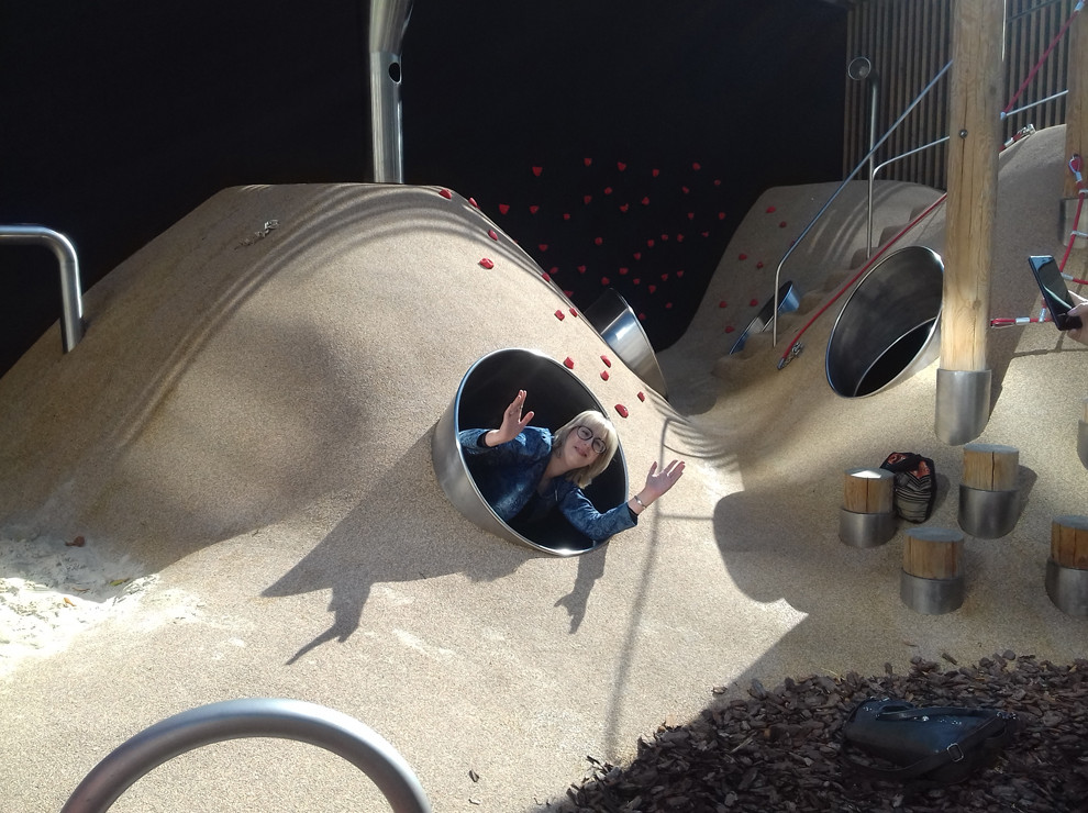 - Проектируя эту детскую площадку, мы имели в виду «пространство неопределенного использования», - признается архитектор, партнер бюро «Дружба» Белла Филатова. - То есть, ребенок сам должен придумать, как объекты, которые он здесь видит, можно использовать. Это развивает фантазию ребенка. Учит мыслить неформально.