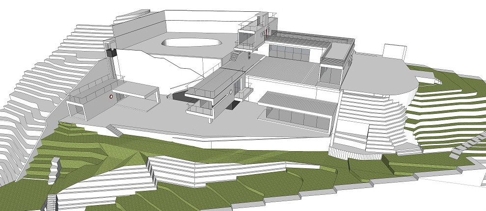 Первоначально предполагалось устройство необходимой площадки на отметке «-8м» относительно террасы №1, на которой в 2006 году был построен дом из легких конструкций с жилой площадью около 250 м2.