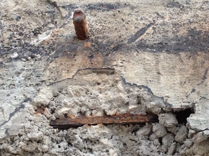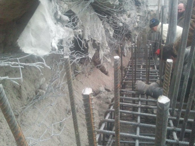 Сквозные разрывы в монолите до 3 см шириной, рыхлая слоистая масса бетона с маркой ниже М50, практически полное отсутствие армирования (10 кг арматуры на 1м3 бетона вместо обычных 110 кг/м3), промывы грунта под конструкциями – вот что предстало глазам изумленных строителей.