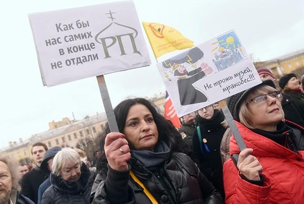 В последние месяцы не утихают скандалы, связанные с передачей Русской православной церкви (РПЦ) храмов, церквей и объектов совсем, казалось бы, не религиозного назначения в разных городах страны. Россияне с тревогой обсуждают будущее Исаакиевского собора, московского НИИ рыбного хозяйства и океанографии, Театра кукол в Ростове и других объектов, попавших в поле зрения священнослужителей.