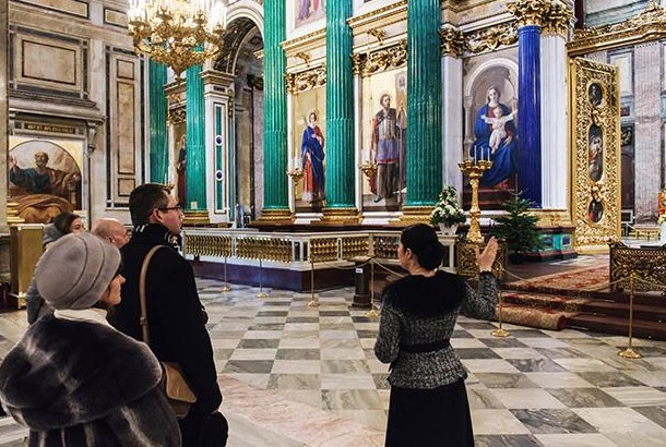 Туристы у главного иконостаса и царских врат в Исаакиевском соборе