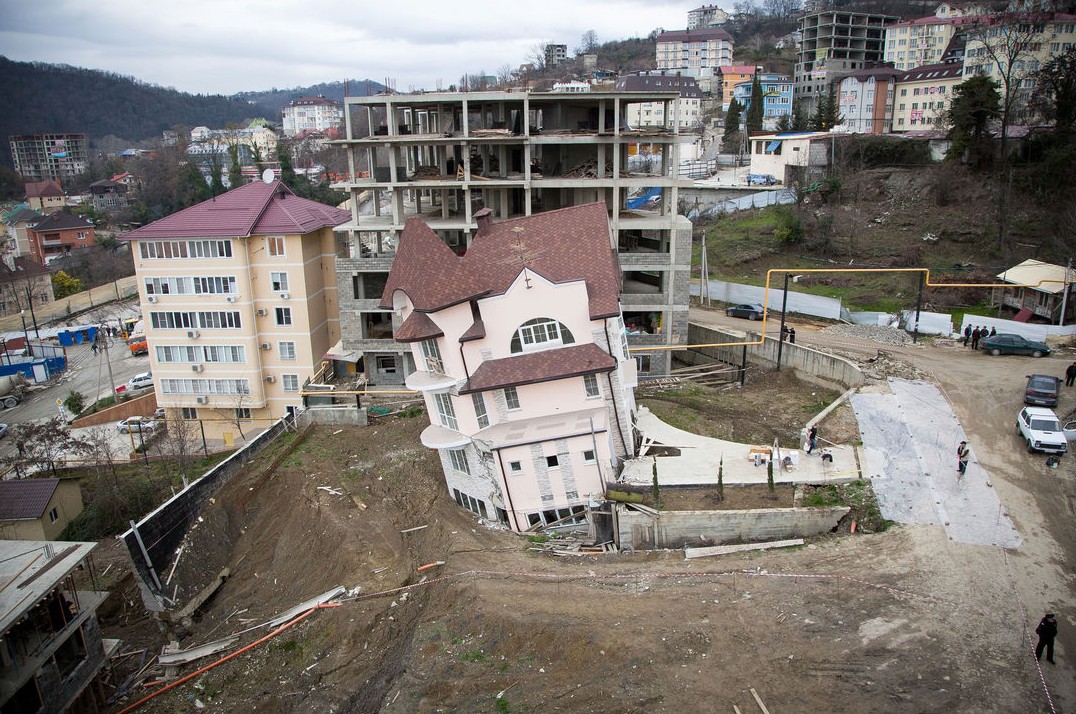 Поспешное строительство объектов для Олимпиады в Сочи чуть не обернулось трагедией. Из-за обвала грунта в тоннеле будущей автотрассы под землю частично провалился трехэтажный жилой дом.