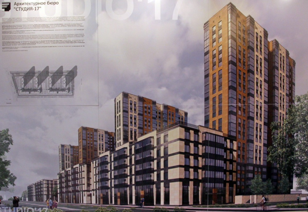 Проект в нынешнем году выполнило ООО «Архитектурное бюро „Студия-17“» Святослава Гайковича. По традиции, заложенной в микрорайоне, вдоль улицы будут низкие объемы (6-этажные), а во дворе — высокие (23-этажные). Всего домов будет шесть.