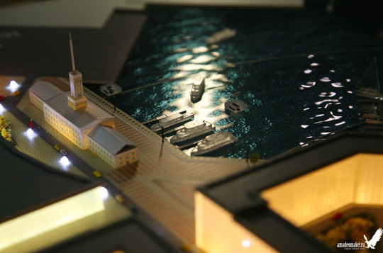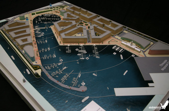 Согласно представленному макету, на месте существующих построек собираются возвести новый многофункциональный комплекс. В акватории ковша Галерного фарватера будут оборудованы стоянки для яхт и катеров. Здание Морского вокзала планируется приспособить под культурные цели. Кроме того, проектировщики учли появление в будущем станции метро «Шкиперская» (продолжение Правобережной линии), предусмотрели для нее вестибюль.