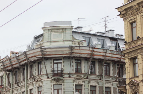 Завершается возведение мансарды на доме № 64 по Невскому проспекту, среди заказчиков которой актер Михаил Боярский. Несмотря на прежние заверения проектировщиков надстройки, она хорошо заметна и существенно искажает облик здания.