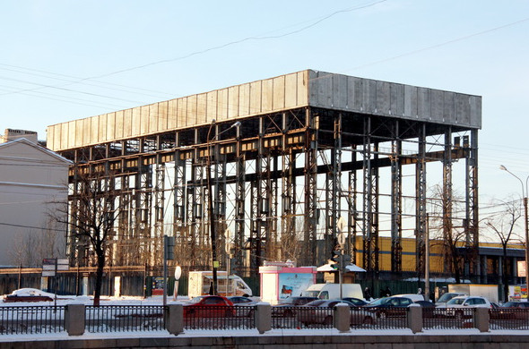 В 2008 году здание «раздели»: сняли фасад и оставили только металлический скелет. С тех пор работы не ведутся.