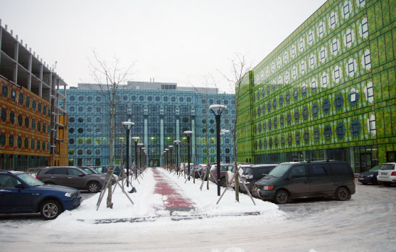 На улице Жукова у Полюстровского пруда построили бизнес-центры, оформленные с отсылкой к временам года. Их возвели на месте дореволюционного завода.