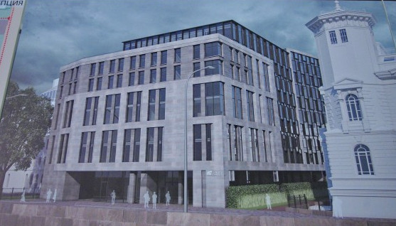 Фасады планировалось облицевать известняком, а переход от основного корпуса к дворовому ранее хотели оформить в виде скошенной ложной кровли, которая понадобилась, дабы соблюсти требования КГИОПа. Проект разработан московским ООО «Технология строительства». Однако этот вариант был отвергнут: от архитекторов потребовали доработать проект, уменьшив количество стекла на фасаде, а также переработать входную группу будущего здания.