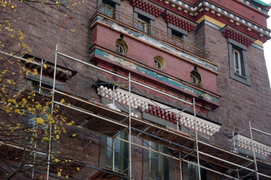 В храме тибетского буддизма Дацан Гунзэчойнэй на Приморском проспекте, 91, делают самовольный ремонт, утверждают в прокуратуре. Изменились некоторые интерьеры здания-памятника, снаружи демонтирована часть штукатурки.