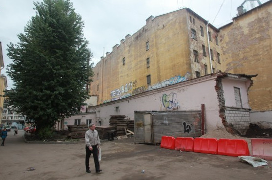 На Загородном проспекте, 19, начался демонтаж нежилых построек. Стоящий на участке дореволюционный доходный дом начнут «реконструировать» под жилой комплекс, когда закончится его расселение.