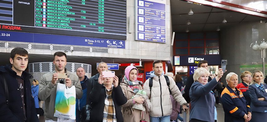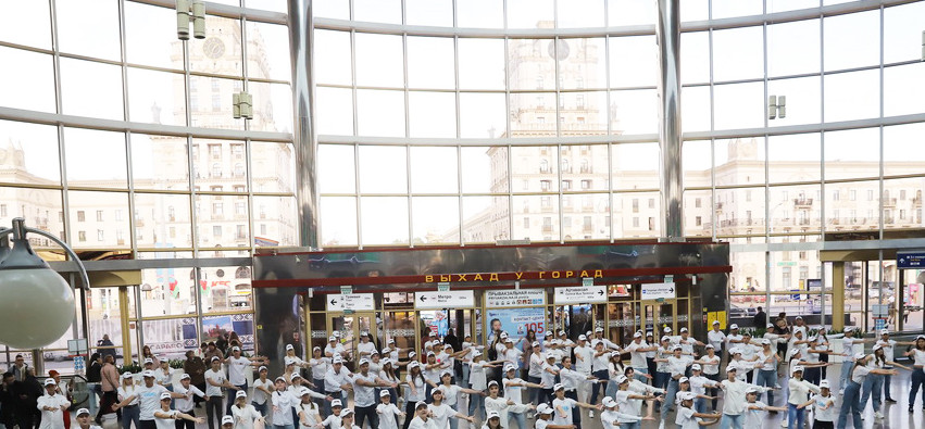 Белорусская железная дорога организовала яркий танцевальный флешмоб, приуроченный к Дню народного единства. Как это происходило — в репортаже корреспондента агентства «Минск-Новости».