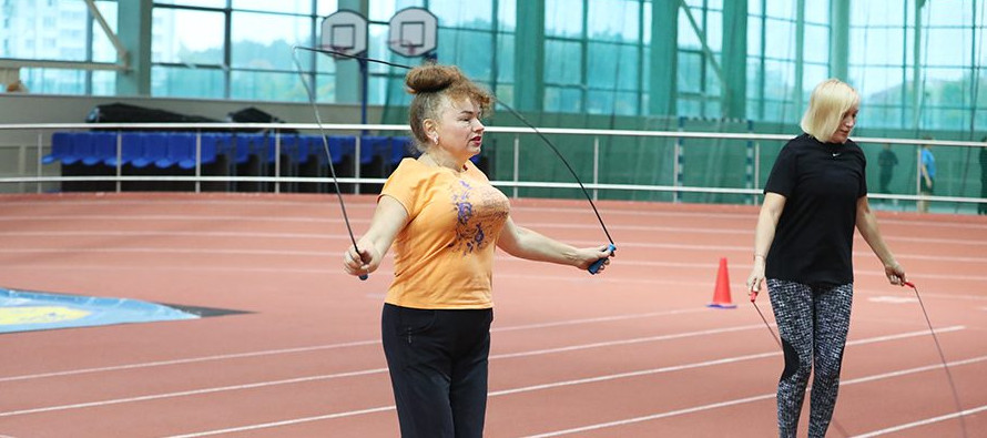 Главный судья мероприятия Валентин Толкачев разделил участников на группы, в которых любители физкультуры выполняли задания на разных «станциях»: отжимание (за 30 сек.), прыжки через скакалку (30 сек.), спортивная ходьба (800 м), наклон вперед.