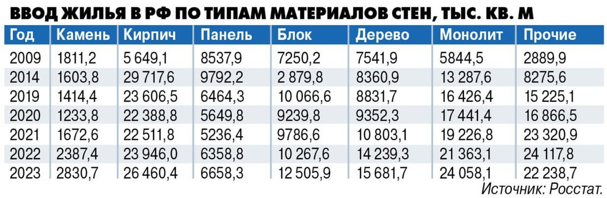 По словам Могилевцевой-Головиной, в структуре предложения этой весной преобладают дома из камня и керамического кирпича. Еще три года назад на их долю приходилось 50%, сейчас она сократилась до 40%. Плюсы у этих технологий очевидные, но и минусы имеются — высокая цена и продолжительные по времени строительно-монтажные работы. 30% предложений приходится на дома из бетона, а по 15% — на деревянные дома и «каркасники» соответственно.