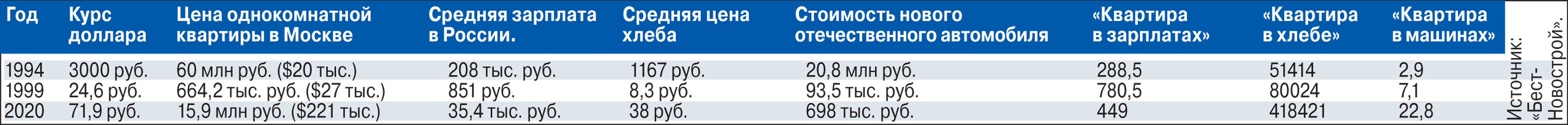 Из-за нескольких волн гиперинфляции в 1990-е годы в России очень сложно перевести цены до 1998 года (после деноминации и дефолта) в современную денежную систему. В середине 1993 года однокомнатная квартира в Москве оценивалась в 15–20 тысяч долларов. Сейчас эта самая квартира стоит более 200 тысяч долларов. Но каких усилий стоили 20 тысяч долларов тогда и 200 тысяч — сейчас?