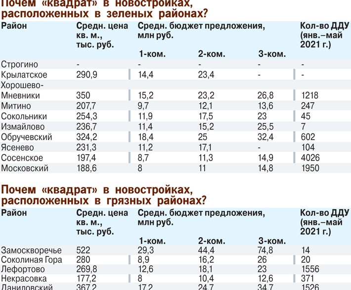 По словам руководителя АЦ ИНКОМ-Недвижимость Дмитрия Таганова, чаще других экологической обстановкой интересуются покупатели квартир средней ценовой категории — комфорт- и бизнес-классов. Но и в этом случае все очень субъективно. По словам аналитика, стоимость жилья может повыситься на 10–15%, если рядом с домом находится зеленая зона, например, крупный парк, а окна квартир к тому же выходят на него. Однако речь сейчас идет, скорее, об отдельных домах, а не обо всем районе в целом. Да и само наличие зеленых массивов не является однозначным свидетельством благоприятной экологической обстановки.