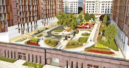 Дворовая территория задумана свободной от машин, здесь обустроят пешеходные дорожки, детские площадки, зоны отдыха. Будет даже фонтан.
