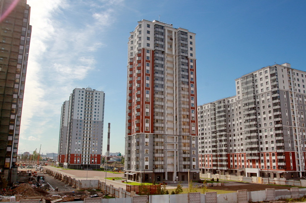 На улице Дыбенко завершилось строительство трех жилых домов-точек от группы «ЛСР». Он расположились на месте промышленной зоны.
