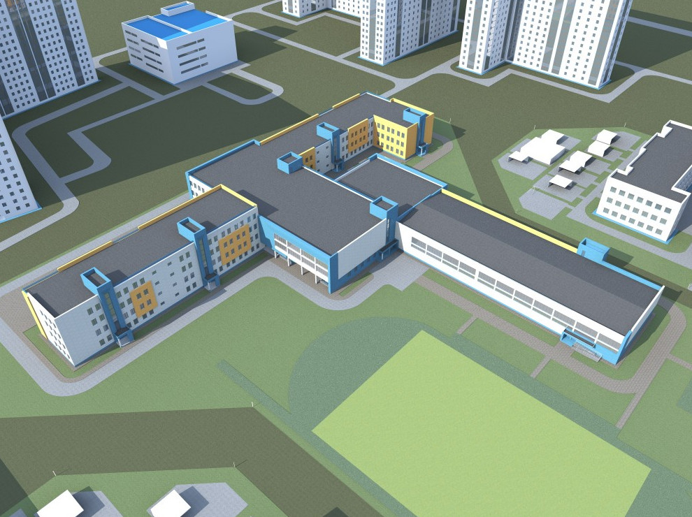 Участок в центре квартала площадью 2,7 гектара отведен под школу. Возводить ее будет город в лице фонда при комитете по строительству. Проект четырехэтажного здания разработало ООО «Инвестиционная строительная компания „НКС“». Учиться здесь будут 1,1 тыс. человек.