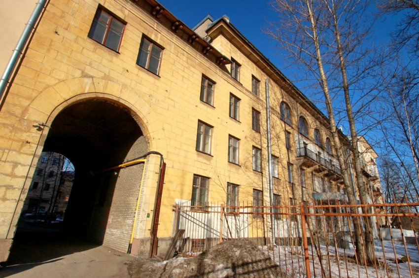 В границах участка находится «сталинка» (Кантемировская улица, 18). Она втиснута между двумя жилыми домами. В документах «сталинка» числится под 1963 годом. Внутри одно время находился волейбольный клуб. Теперь, судя по всему, здание пустует.