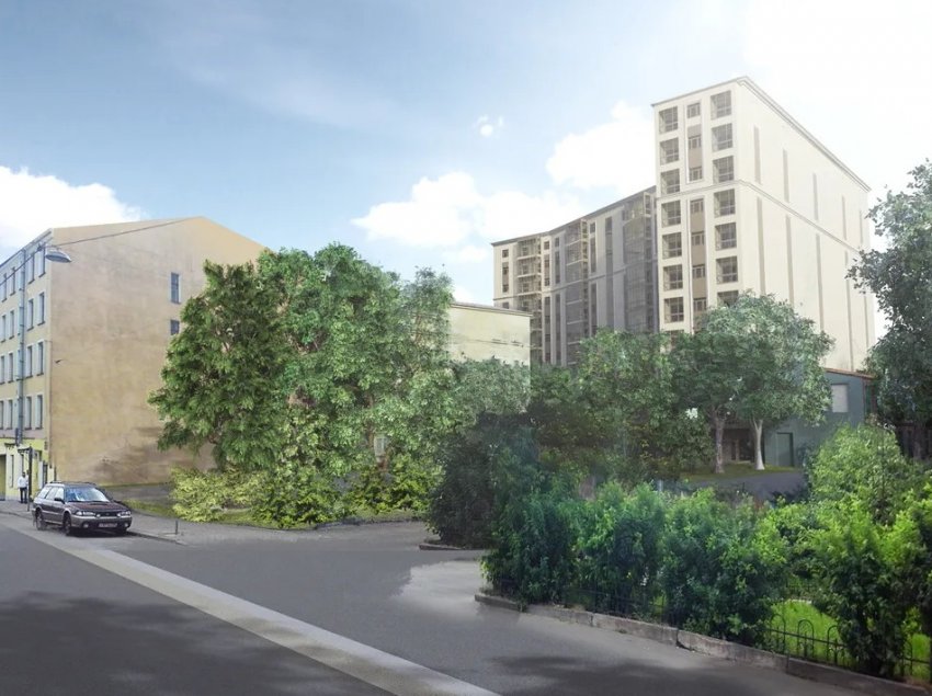Представлен проект жилого дома на Днепропетровской улице, 7. Он расположится на дворовой территории, но из-за своей высоты будет хорошо виден с дороги. Земельный площадь площадью 0,6 гектара на красную линию Днепропетровской улицы выходит 20-метровой границей. Основная часть находится во дворе за