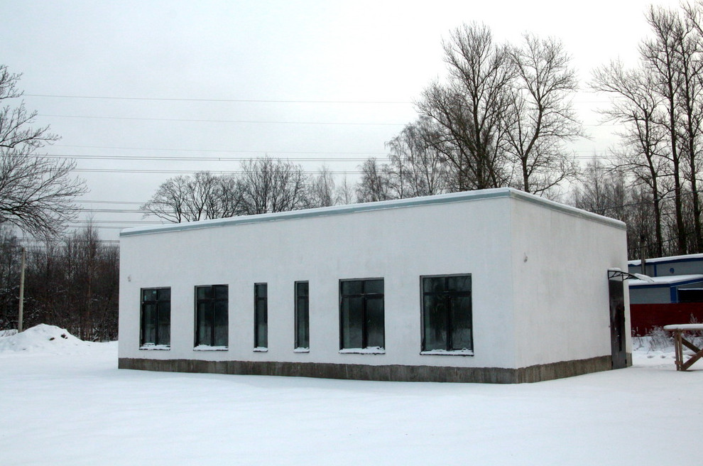 На Капсюльном шоссе, 37, на берегу Охтинского разлива построили «административное здание» в виде небольшой белой коробки. Оно заменило собой деревянный дореволюционный жилой дом.