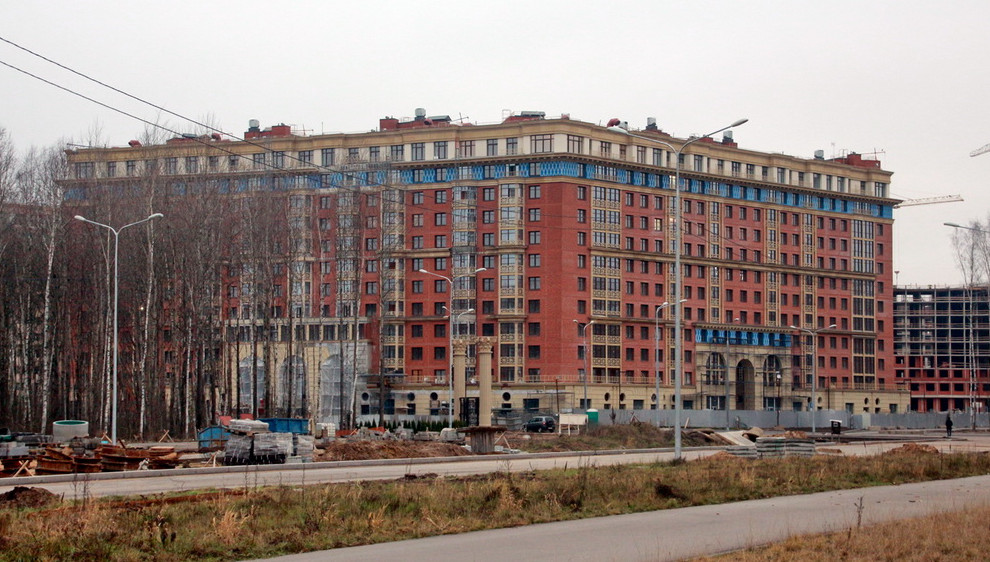 Вместо леса на Плесецкой улице завершилось строительство одного из трех жилых домов-пентагонов. Его фасады, по задумке Максима Атаянца, выполнены в классической архитектуре.