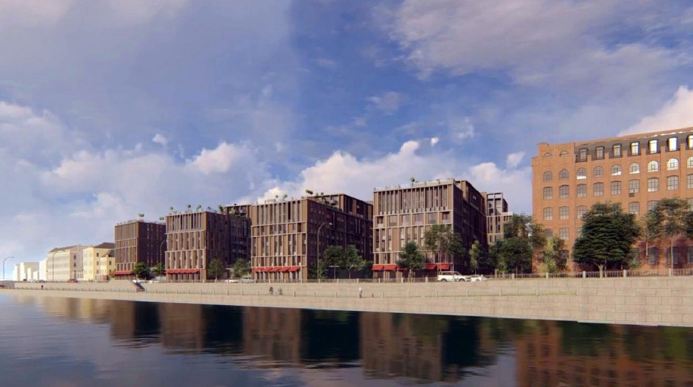 Представлен новый проект жилого комплекса, который займет территорию Прядильно-ниточного комбината на Синопской набережной. Дома появятся в двух кварталах, разделенных улицей Красного Текстильщика.