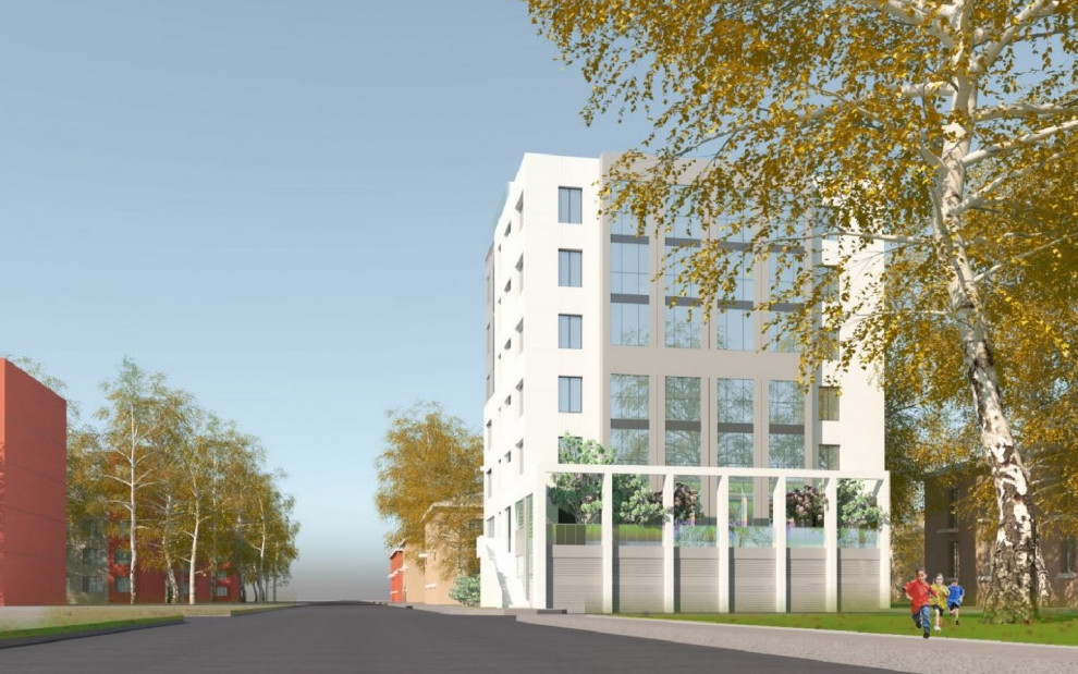Как стало известно «Канонеру», взамен «Техноком» намерен построить новый жилой дом. Проект выполнило ООО «Слои аркитектс».