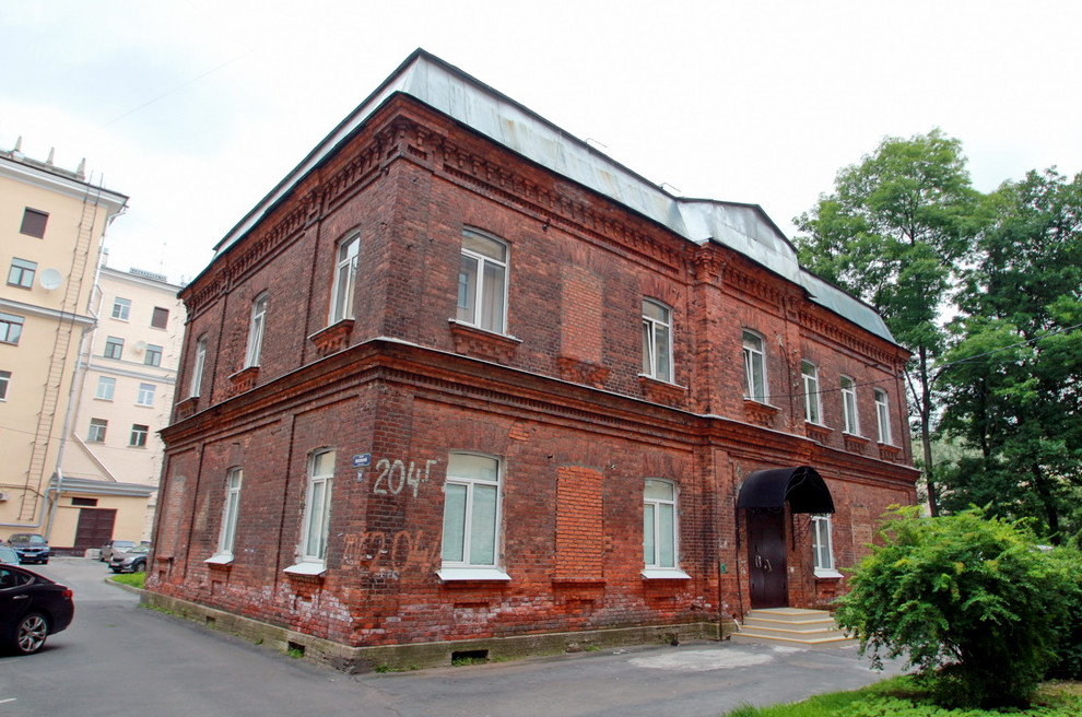 Двухэтажный краснокирпичный дом был построен в 1896 году по проекту гражданского инженера Александра Павловского. Здание было необходимо Николаевской Чесменской богадельне, которая разместила в нем инвалидов. В сталинское время постройку решили не сносить, а поместить во дворе возведенной в 1953 году шестиэтажки. Внутри сделали общежитие Института аэрокосмического приборостроения.