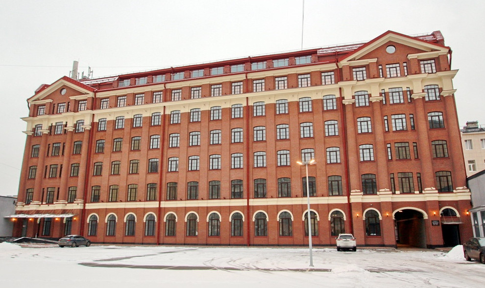 Здание макаронной фабрики АО «М. Иванов и Н. Гольдберг» было построено в 1914 году по проекту архитектора Иосифа Долгинова. В 2013-м шестиэтажку приспособили под бизнес-центр по проекту ООО «Экостройпроект» (на субподряде у ООО «Падамс»). Тогда ему добавили седьмой этаж, но КГИОП счел это законным.