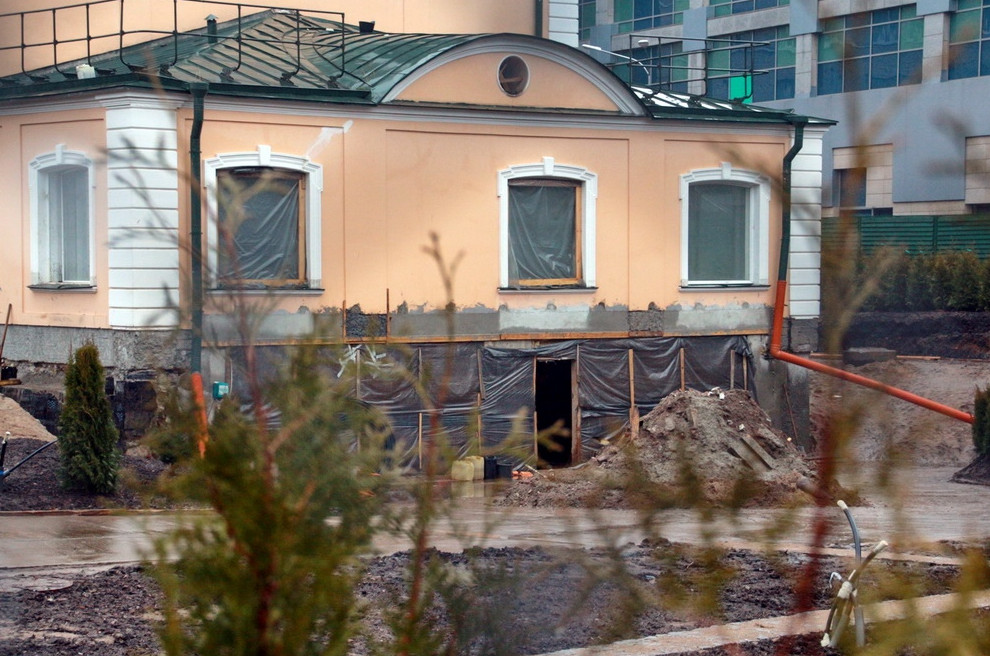В феврале очевидцы заметили строительные работы в здании. Они предположили, что подвалы углубляют — рядом лежат горы земли.