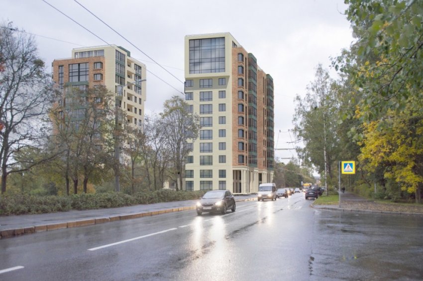 Как писал «Канонер», проект нового жилого дома на этом месте разработало ООО «Лявданский и Герасимов. Архитектурная мастерская». Причем заказчиком у фирмы был не «Рант», а Физико-технический институт. В исполнении мастерской получились два 12-этажных корпуса, ориентированных параллельно улице и поставленных на общий стилобат.