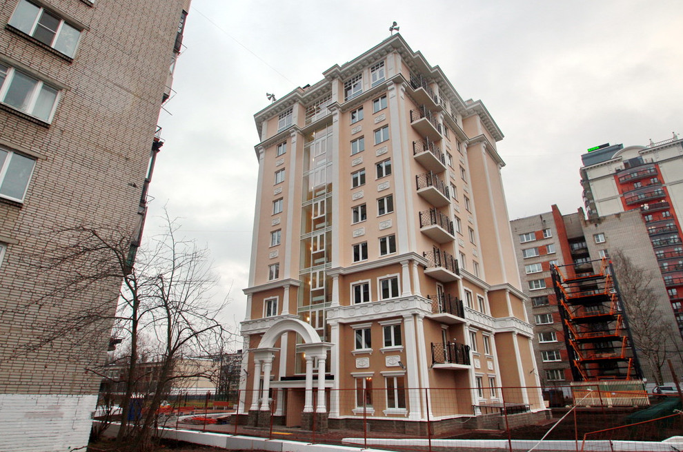 Во дворах на проспекте Стачек возле парка «Александрино» завершилось строительство жилого дома. Он встал на месте пруда, который оставался от прежнего русла реки Новой.