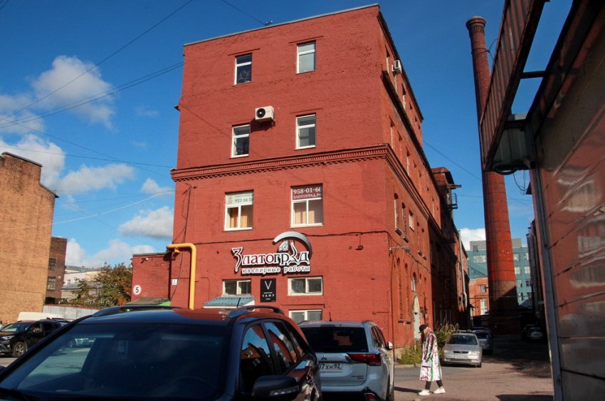 На участке стоят дореволюционные здания. Наиболее заметный — четырехэтажный корпус (Петроградская набережная, 34, литера В), торцом обращенный к улице Чапаева. По закону о зонах охраны его как дореволюционный не допускается сносить, а при частичной разборке требуется восстановить внешний облик. Однако в документах изменена датировка: теперь это 1926 год.