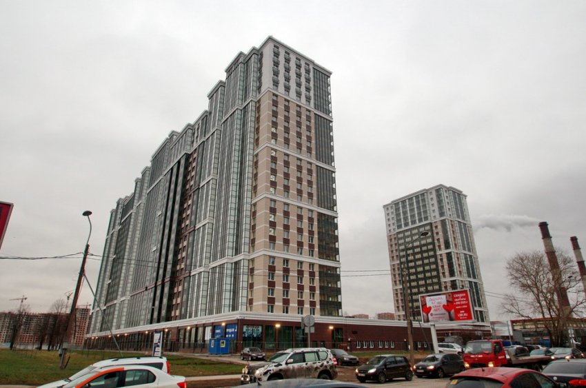 Проект жилого комплекса разработало ООО «Испытательный центр „Стройэксперт“». Получились два 23-этажных здания в «спальной» архитектуре: коробка расположилась вдоль Октябрьской набережной, точка — за ней почти на улице Крыленко.