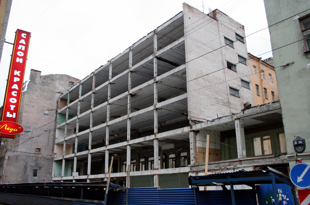 В 2006 году три женщины — Галина Невская, Рита Жмулина и Алевтина Орлова — получили разрешение на «реконструкцию нежилого здания под гостиницу с надстройкой мансардного этажа». Проектом, разработанным ООО «Экостройпроект», предполагался снос двухэтажного объема. Взамен построили новый ступенчатый объем, но чуть дальше от красной линии. Это позволило сделать на тротуаре места для парковки. Также появился седьмой этаж — тот самый «мансардный».