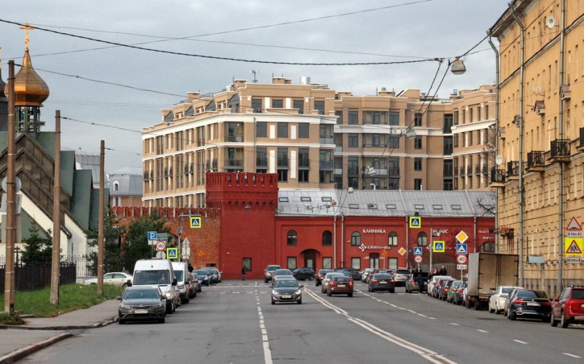 Для жилого дома в Полтавском власти согласовали восьмиэтажную высоту, притом что слева стоит трехэтажное здание (Невский проспект, 85, литера АМ), а справа — двух- (Полтавская улица, 7). Последнее выходит на красную линию Полтавской улицы и вместе с примыкающей оградой Феодоровского собора, выполненной в виде краснокирпичной крепостной стены, завершает перспективу Миргородской улицы. В итоге новостройка стала более чем в два раза превышать стену и историческое здание, кардинально изменив облик ансамбля собора.
