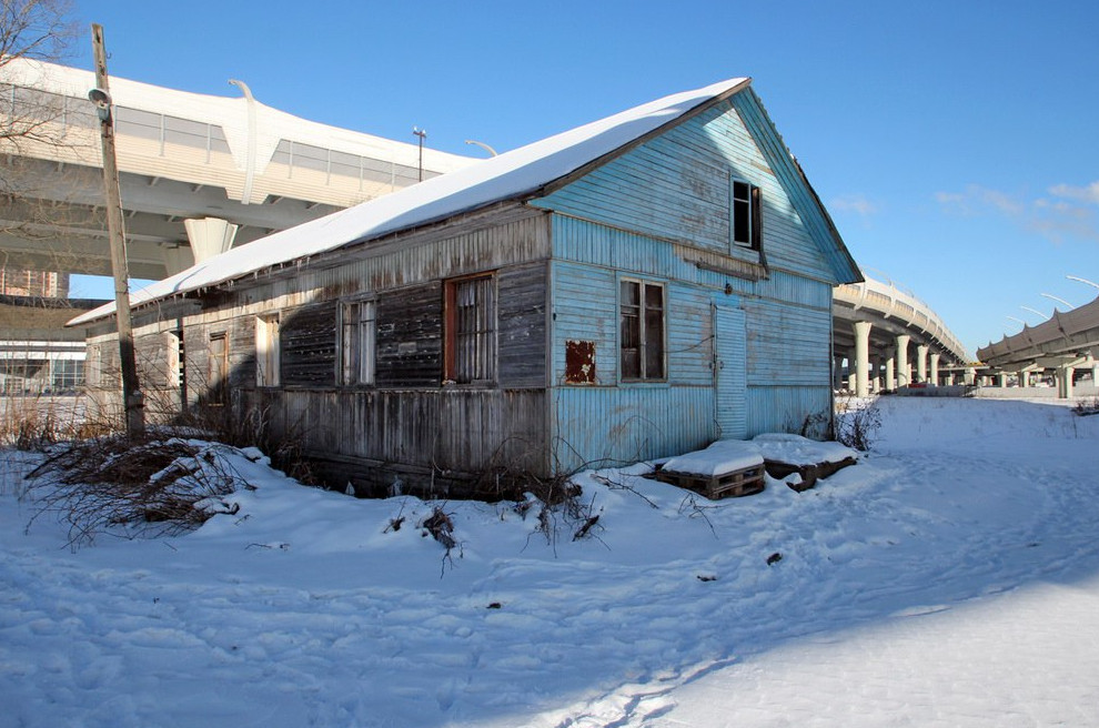 Одноэтажный деревянный дом был построен в 1951 году. Каково было его назначение, неизвестно. Возможно, он входил в состав одного из предприятий, которые тут располагались. В 2013 году вокруг здания построили съезд с Западного скоростного диаметра на Приморский проспект.