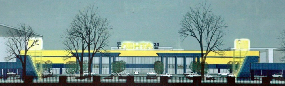 Гипермаркет «Лента» возвели в 2007 году, застройщиком было ООО «ОМНИ». Проект коробки делало ООО «Архитектурная мастерская Столярчука». Ранее соавтор этой работы Елизавета Рубина говорила «Канонеру», что фасад здания «вписался в окружающую застройку», для чего были использованы «колонны, портики».