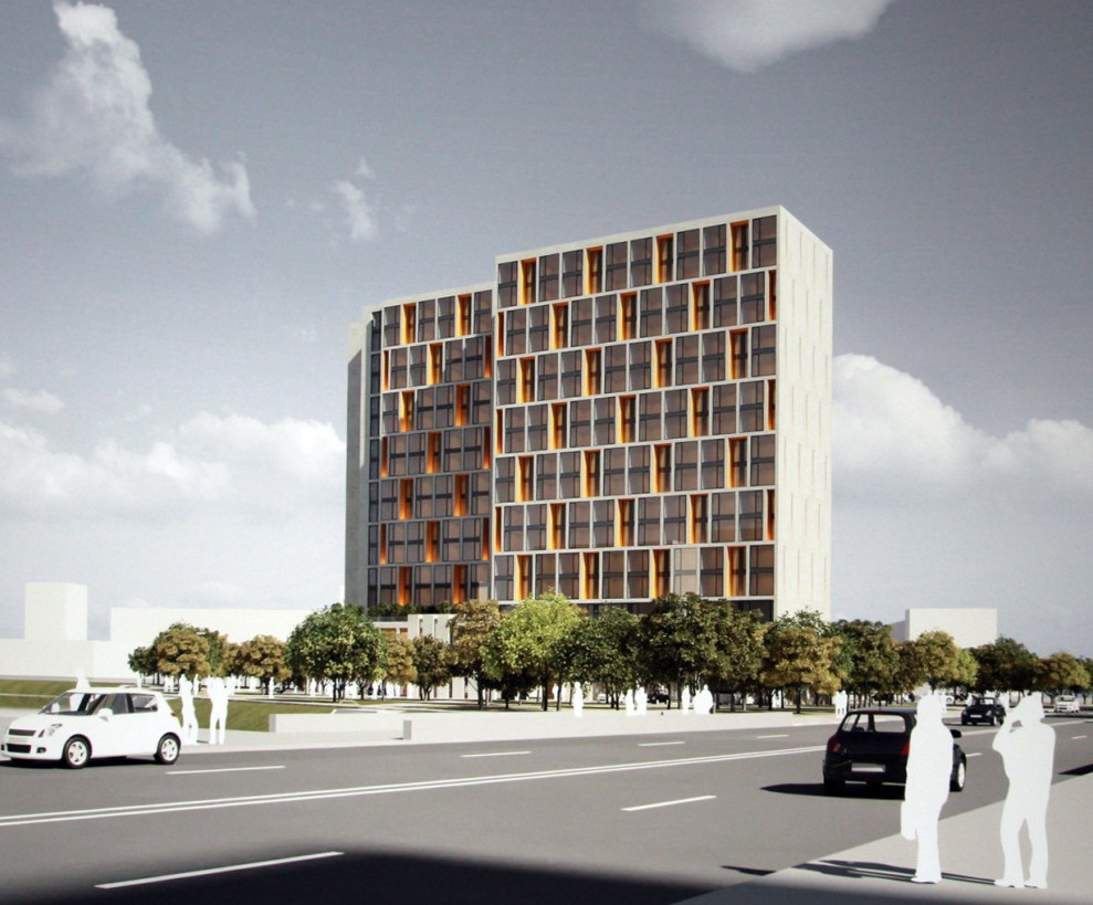 В Ульянке на проспекте Ветеранов, 91, корпус 1, собираются построить гостиницу. Она будет состоять из двух сдвинутых коробок, обращенных к берегу реки Новой.