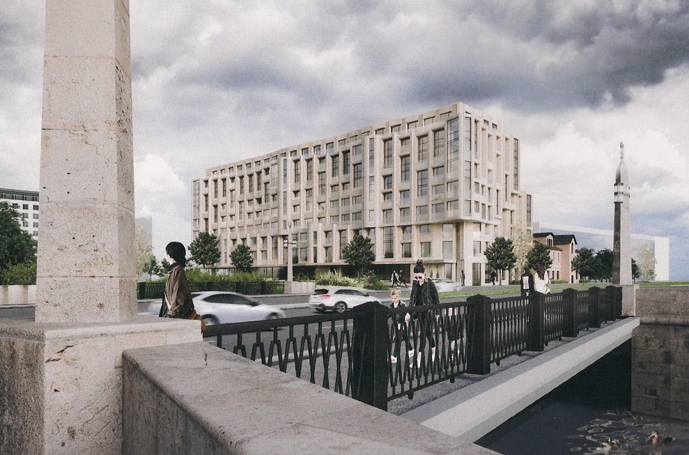 В интервью «Канонеру» владелец AAG Александр Завьялов говорил, что старинное здание будет перемещено, чтобы удобнее разместить новый жилой дом. В декабре представили проект новостройки с учетом того, что старинную двухэтажку разместят на красной линии Выборгской набережной; облик разработало ООО «Липгарт архитектс» Степана Липгарта.