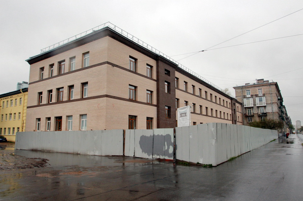 Трехэтажное здание на углу Шкиперского протока и Наличной улицы было построено в 1938 году. Его фасады были покрыты белой плиткой. В последнее время внутри располагался Колледж туризма и гостиничного сервиса.