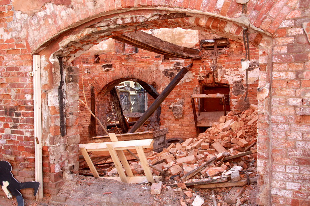 Впрочем, посетивший сегодня площадку корреспондент «Канонера» следов демонтажа не заметил. Возможно, пока строители убирают груды кирпичей, которыми закиданы помещения.