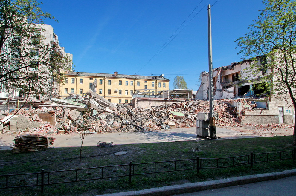 На 11-й Красноармейской улице, 11, сносят советские корпуса хлебозавода «Пекарь», в том числе дореволюционную котельную с дымовой трубой. На их месте возникнет жилой комплекс.