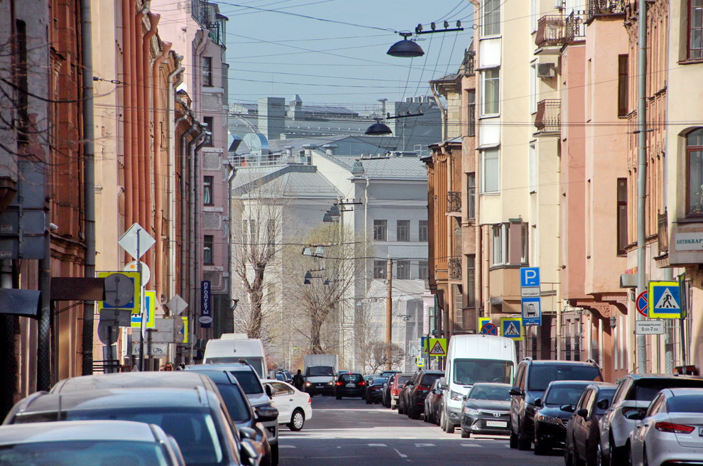 Надстройка сталинского здания школы на углу Большой Пушкарской и Введенской улиц, появившаяся в ходе его реконструкции для нужд Академии танца Бориса Эйфмана, стала заметна в перспективе улицы Воскова.